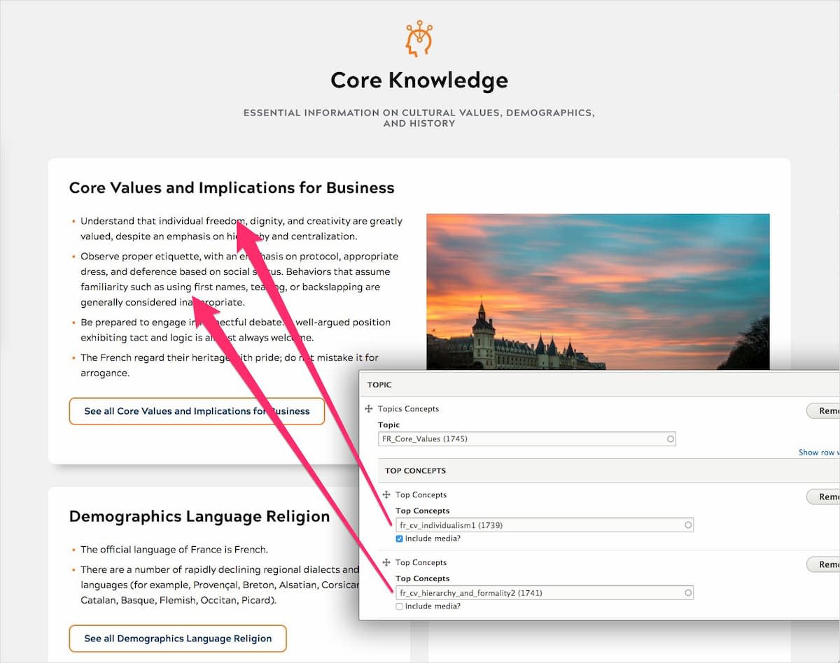 GlobeSmart users are able to run comparisons against a representative profile for almost 100 cultures to see how they compare to that culture’s norms. Aperian Global’s culture guides take the insights a user can glean about a culture to the next level with highly detailed articles around communication styles, diversity and inclusion, effective leadership styles, and up to 60 other topics. Based on user interviews, we knew that current users were quite busy, were hoping for a clearer way to find the most relevant content in the moment, and were hoping to have more images and videos to bring the valuable cultural insights to life.