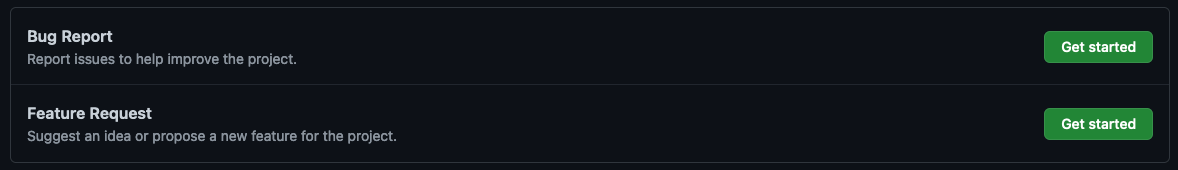 To see how the Bug Report template looks when fully filled out, you can see this issue, created specifically for this article and definitely not as an oversight when building the project.