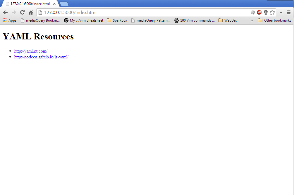 You should see “running ‘connect:server’” on a port number like “5000.” That means you can now access your new project files in the browser at: http://localhost:5000/