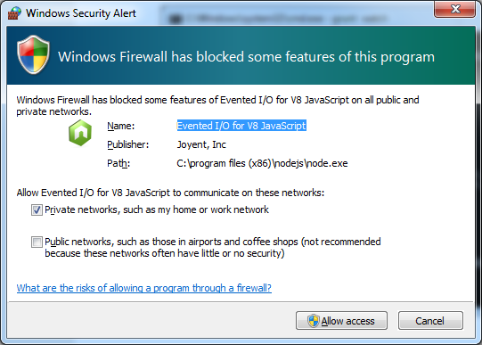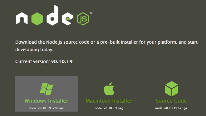 At time of writing this post, “node-v0.10.21-x86.msi” is the latest file, but this tutorial and testing were done with “node-v0.10.19-x86.msi”. Follow the steps in the images below: