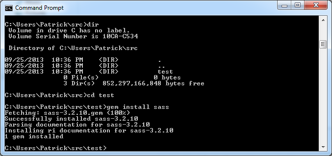 With Ruby installed, you can now install Sass by running the following command: